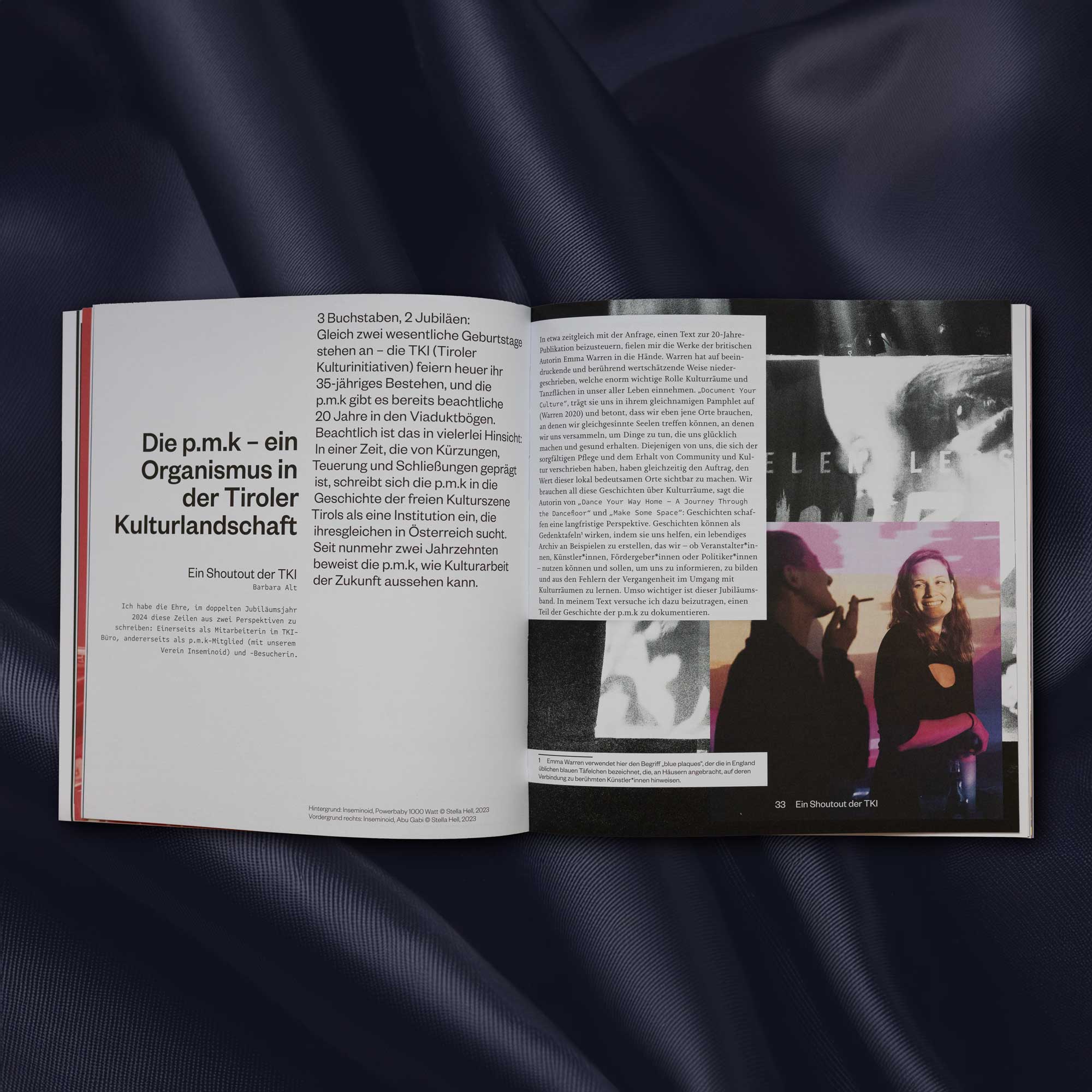 „Die p.m.k sind und waren seit ihrem Bestehen über 60 Vereine und hunderte von Menschen, die ihre Freizeit dafür genützt haben, Innsbruck mit einem breiten zeitgemäßen Kulturprogramm zu versorgen und darauf zu schauen, dass die Subkultur stabil bleibt. Auf die nächsten 20 Jahre! There’s No Business Like No Business!“ (Ankündigungstext p.m.k)