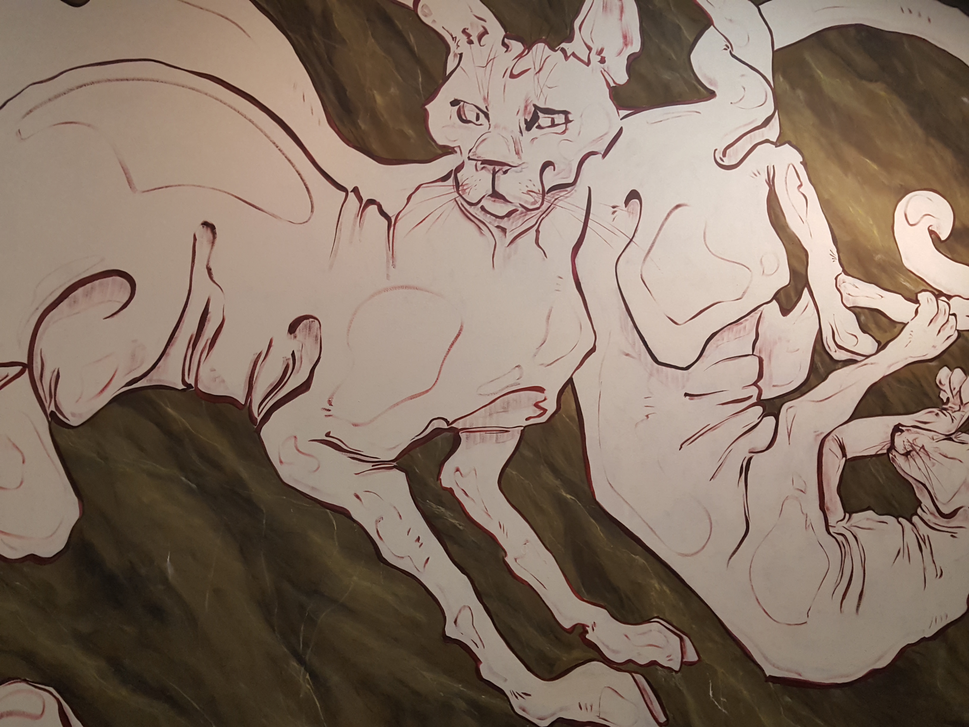 Da ich lange in Berlin gelebt habe und von dort über Graffiti berichtet habe (beispielsweise Backjumps, City of Names, Jazzstyle Corner) und selber in Hamburg Ausstellungen/ Festivals zum Thema kuratiert habe ist das hier gebotene enttäuschend. Graffiti (und zu einem geringern Grad auch Skateboarding) im Innenraum ist immer problematisch und eine Herausforderung, denn hier kommt zusammen, was nicht zusammen gehört. Trotzdem gibt es Best Practice Beispiele, Lösungen die weniger problematisch sind als andere. Dies ist hier nicht gegeben, außer, dass direkt auf die Wand gemalt werden konnte. Zwei Werke wurden an der Außenfassade angebracht.